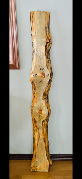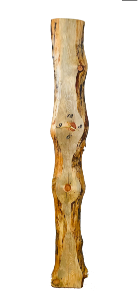 Cette magnifique horloge réalisée sur une tranche de bois de pin sera parfaite dans un chalet ou une maison à la décoration rustique. Fonctionne avec une pile AA. Elle peut être posée au sol ou attachée au mur.